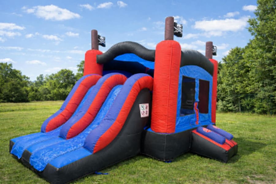 Set sail for nonstop fun with our Pirate Combo inflatable rental — a bold, high-energy bounce house + slide combo that turns any yard or event space into a mini adventure! With its eye-catching red, blue, and black “pirate ship” look, kids feel like they’re boarding for a day of action the moment they see it. Inside, they’ll have plenty of room to jump and play, then climb up and race down the attached slide for even more excitement. It’s the perfect all-in-one inflatable for birthdays, school events, church gatherings, and community parties.