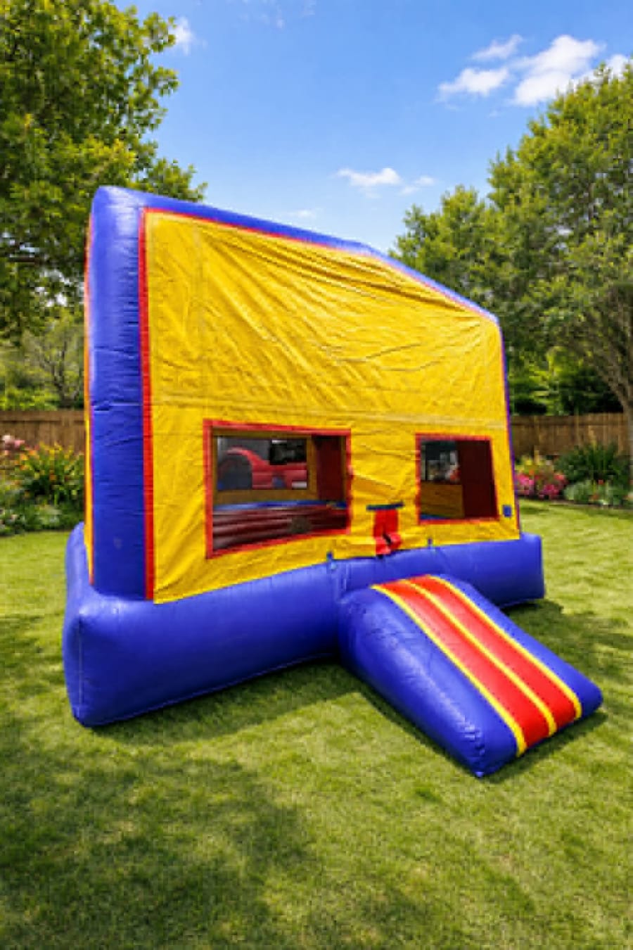 Looking for a bounce house rental that fits any party theme? Our Classic Bounce House Rental is a bright, gender-neutral inflatable that works perfectly for birthdays, school events, church gatherings, daycare parties, and community festivals. With its clean primary colors (yellow, blue, and red) and spacious jumping area, it’s an easy choice when you want simple, high-energy fun that both boys and girls love. The large mesh windows provide great airflow and make it easy for parents to supervise while kids jump, bounce, and play safely.