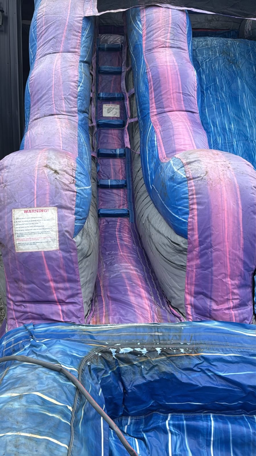 🍇🌴 16ft Tropical Purple Crush Water Slide Bring the coolest splash party to your backyard with the vibrant 16ft Tropical Purple Crush Water Slide! 💦🎉 With its eye catching purple and blue tropical colors and towering palm trees at the top, this slide instantly turns any party into a fun island adventure. Riders climb to the top of the 16 foot slide, race down the slippery lane, and splash into the refreshing pool below for the ultimate summer thrill! Perfect for birthday parties, backyard celebrations, school events, church gatherings, and hot summer days, the Purple Crush delivers nonstop excitement and keeps everyone cool while the fun keeps flowing. ⭐ Features 🌴 Tropical palm tree design for island vibes 💦 16 foot tall slide for exciting rides 🧗 Easy climb steps with safety handles 🌊 Refreshing splash pool landing 🎉 Bright purple and blue colors that stand out at any party 🎈 Perfect For • Birthday Parties • Backyard Summer Parties • Family Gatherings • School Events • Church Festivals The 16ft Tropical Purple Crush Water Slide is the perfect way to add big splashes, bright colors, and unforgettable fun to your next event! Book today with Bounce Around Springfield and let the sliding, splashing, and summer fun begin! ☀️💦🎉