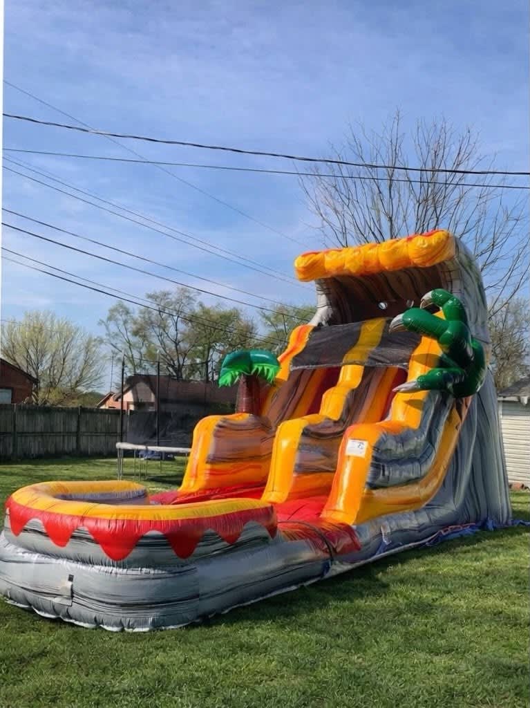 Get ready for a ROARING good time! Our 16ft T-Rex Water Slide brings prehistoric fun and massive excitement to any party. With its bold volcano theme, bright colors, and awesome dinosaur detail, this slide is guaranteed to be the centerpiece of your event! Climb to the top, race down the fast 16ft drop, and splash into the refreshing pool below—perfect for cooling off on those hot summer days!